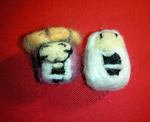 今年もよろしくお願いいたします。 後輩リクエストの喜助さんです。 見えますでしょうか? 恋次さんと並べてみました。 適当に(←オイ)作った割にはよく似た大きさに出来た(笑)。 帽子を作るのがちょっと難しかったです。帽子に見えないのが…。 喜助さんの上着?(名前がわからん)の色の羊毛がなくて、黒と帽子の色の羊毛を混ぜて色を作りました。 ちょっと斑ですが許して下さい。 後は先輩リクエストのモノがあるのですが、知らないキャラでちょっと困ってます。画像が欲しい。前からと横からと後ろからと上からの画像が…。 先輩に用意してもらわないと…。 本日(昨日)、無事(?)恋次さんがお婿さんになりに向かいました。 友人の友人さんの所に…。(遠っ!!) 恋次さんを作るきっかけは、映画を観たのもありますが、友人の友人さんの恋次さんに対する熱い思いを友人から聞いたからです。 私は人が好き、と言うものを作るのが好きなので…。 誰かの熱い気持ちが人を動かすのですよ。なんて(笑)。 考えて動くきっかけをくれた友人の友人さんに感謝です。 しかもお婿に貰ってくださるなんてっ!? 知らない奴からいらないだろ、と思っていたのですが…。心が広いっす。 ありがたい事でございます。 その話を聞かせてくれた友人にも感謝です。 いつ作れるかはわかんないけど、もう1度この形で京浮を作ろうと思っているので気長に待っててやって下さい。 |