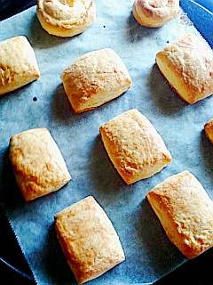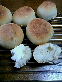 04/07/21:26 天然酵母。とりあえず三連発。 自家製天然酵母で作ったパンとスコーン。 もう一つは黒糖まんじゅうです。これは天然酵母ではないですが。 黒糖まんじゅうは、他所に持っていく間もなく家の者が食べつくしました(笑)。評判が良かったので、今度は少し多めに作っておすそ分けしたいです。結構黒糖を使うので多めに用意しなきゃね。 天然酵母のパンとスコーンは、多分失敗…? 歯ごたえがよいです、凄く。 丈夫な歯の人にオススメ(笑)。 パンの方は気温があまり上がらなかったせいか、発酵がうまくいなかったんだけど、焼き始めたらちょっと膨らんだ。 酵母が死んでるんじゃないかと心配してたんだけど、一応生きてたみたい。(瀕死だけど…) 義姉達からのお土産のバターを付けて食べてます。 スコーンも同様にあんまり膨らんでないです。だってほら酵母が瀕死状態だから…。 味は良いんだけどね~。 干しぶどうとくるみのスコーンもあるんだけど、写真撮るの忘れた。 仕事行く前に焼いてお弁当に持っていったから…。良い歯ごたえでした…。 しかし、天然酵母を作るのは難しい。 簡単に出来そうなのに出来ない。元気な酵母ちゃんにならない。 もっとふっくらしたのよ焼きたいな~。 もうちょっと暖かくなってから再チャレンジしてみたい。 PR